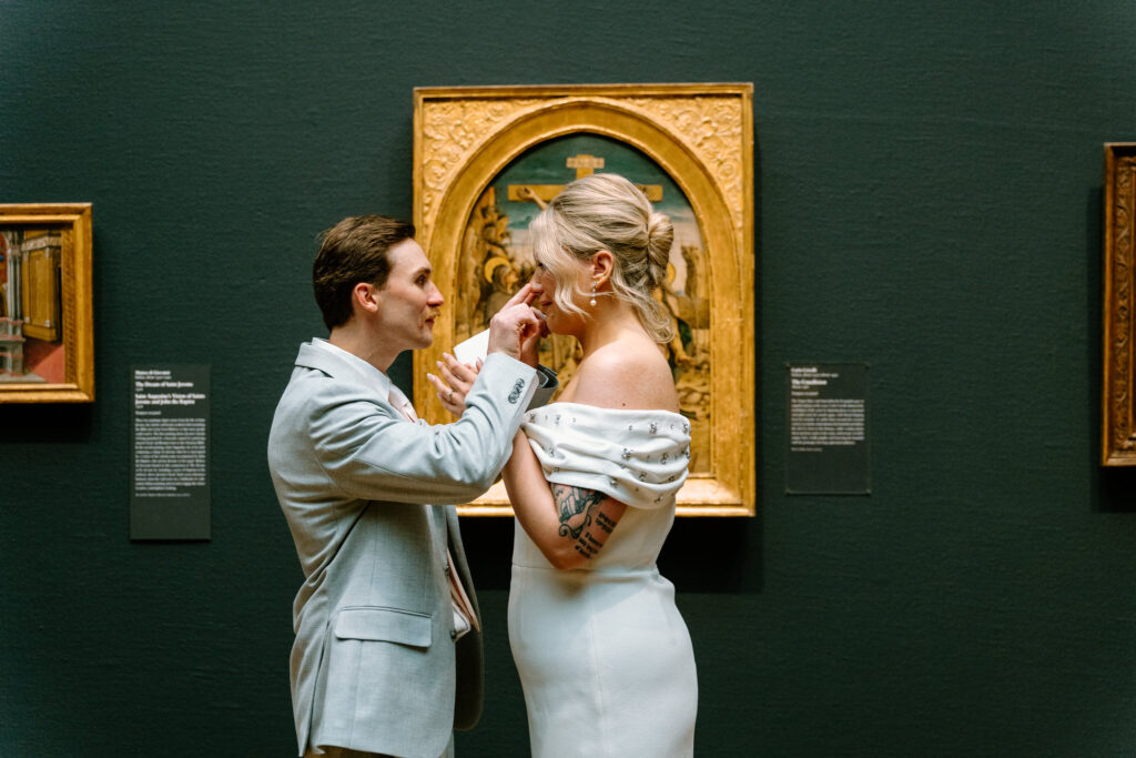 Aside from taking newlywed portraits at the Art Institute of Chicago, Andrew and Natalia decided to exchange vows there since the judge at City Hall does not give couples the option to do so during the quick ceremony. I love when my couples choose to do this at one of our planned locations because it adds more intimate moments in the story of their special day.