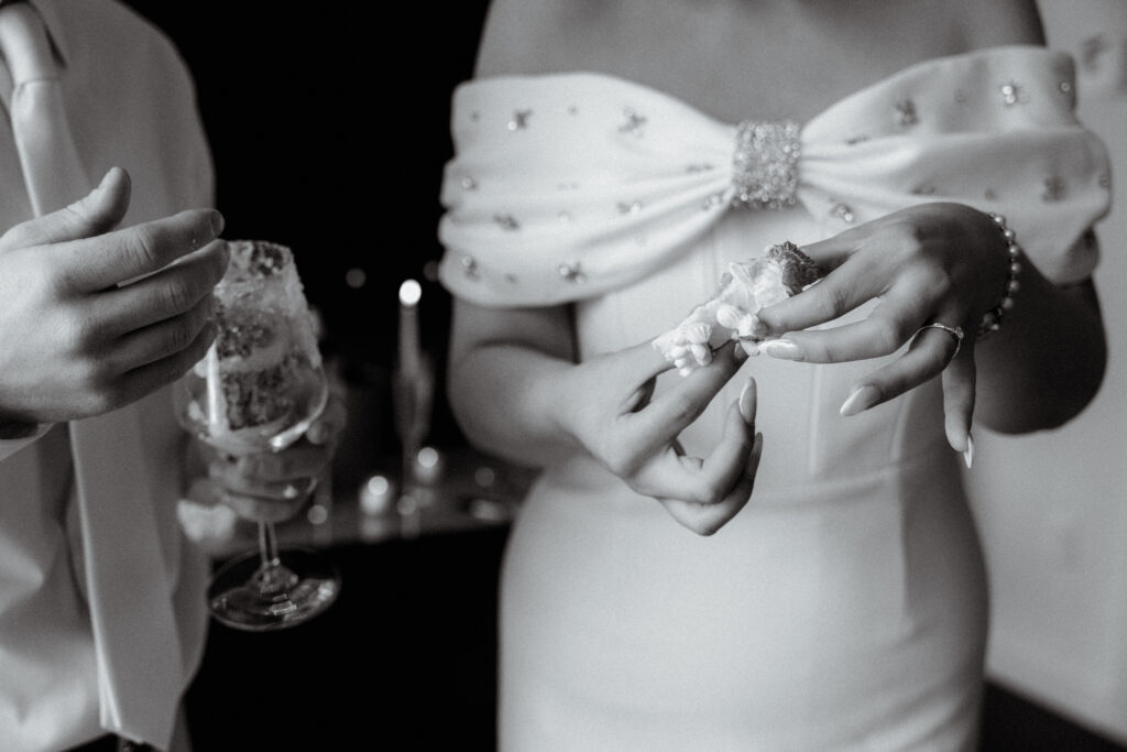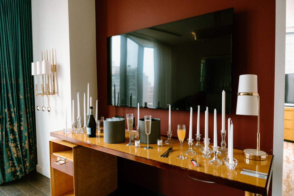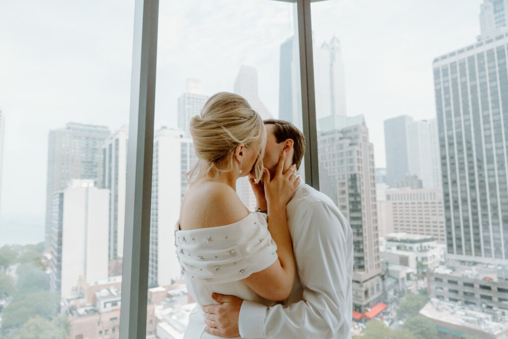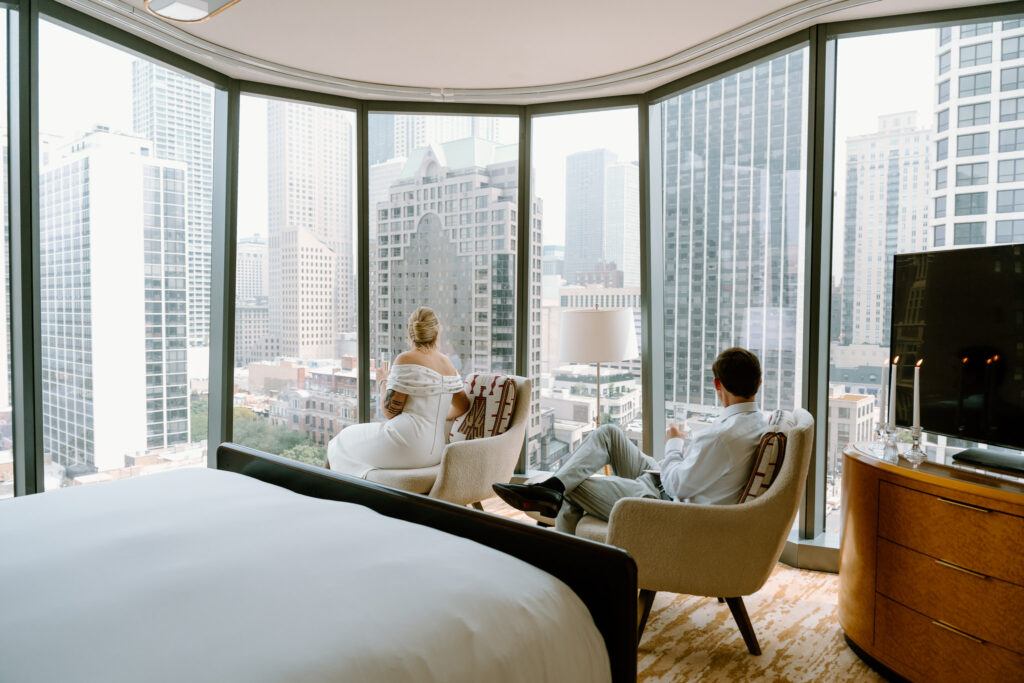 To wrap up the day, we Ubered north to the Viceroy Chicago, where the couple celebrated with cake, champagne, and portraits in their hotel room overlooking the Gold Coast.